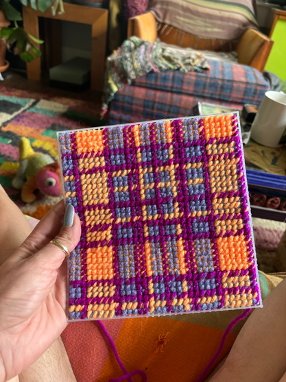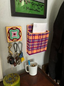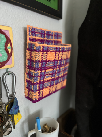 a little fun necessary guy to keep our mail from piling up. I bought an ottoman from the thrift store years ago with a plaid pattern that I love - this ottoman is getting beat up by having 6 dogs, so I wanted to honor her beauty by making a pattern from her pattern - -